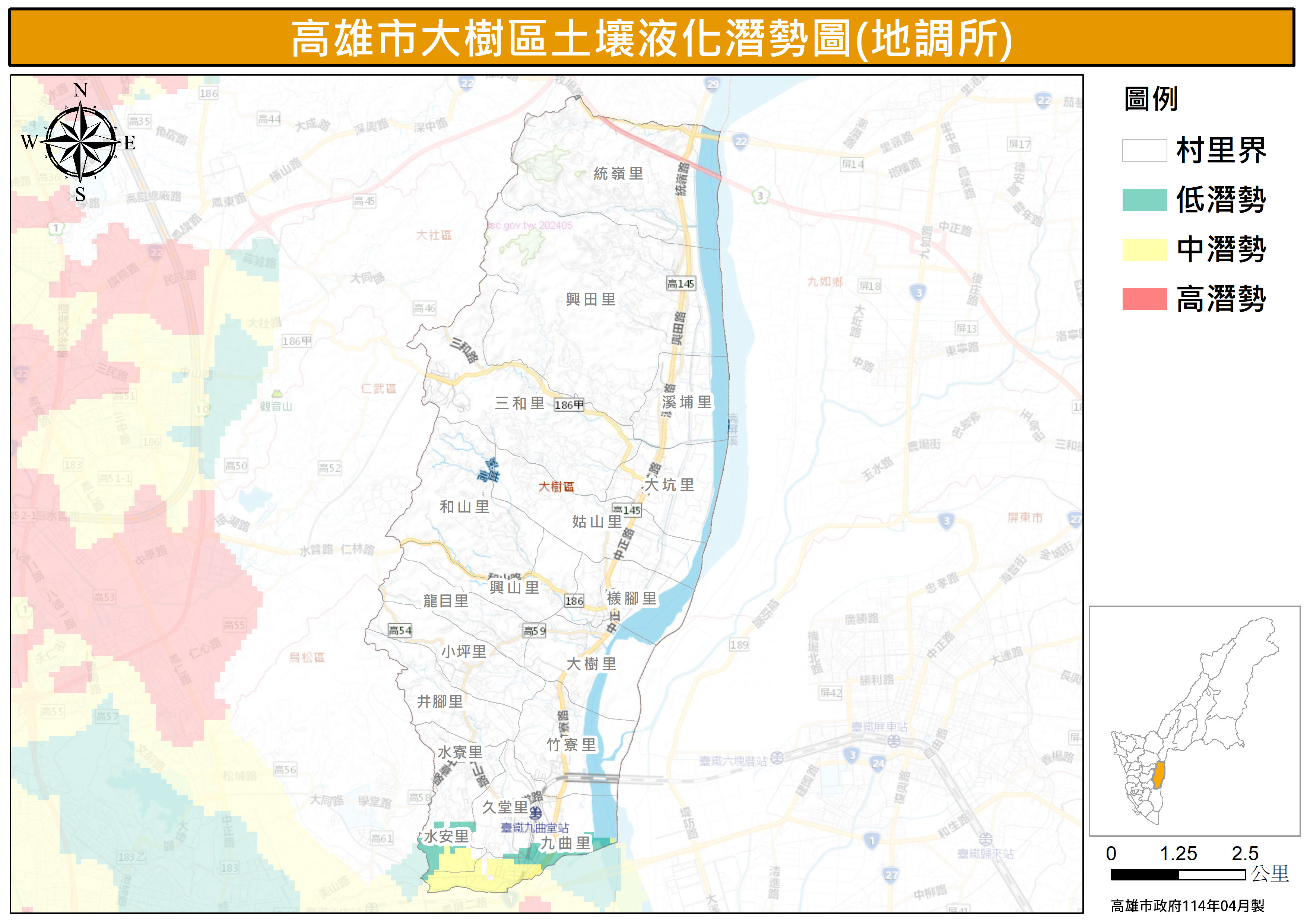 高雄市大樹區土壤液化潛勢圖-地調所