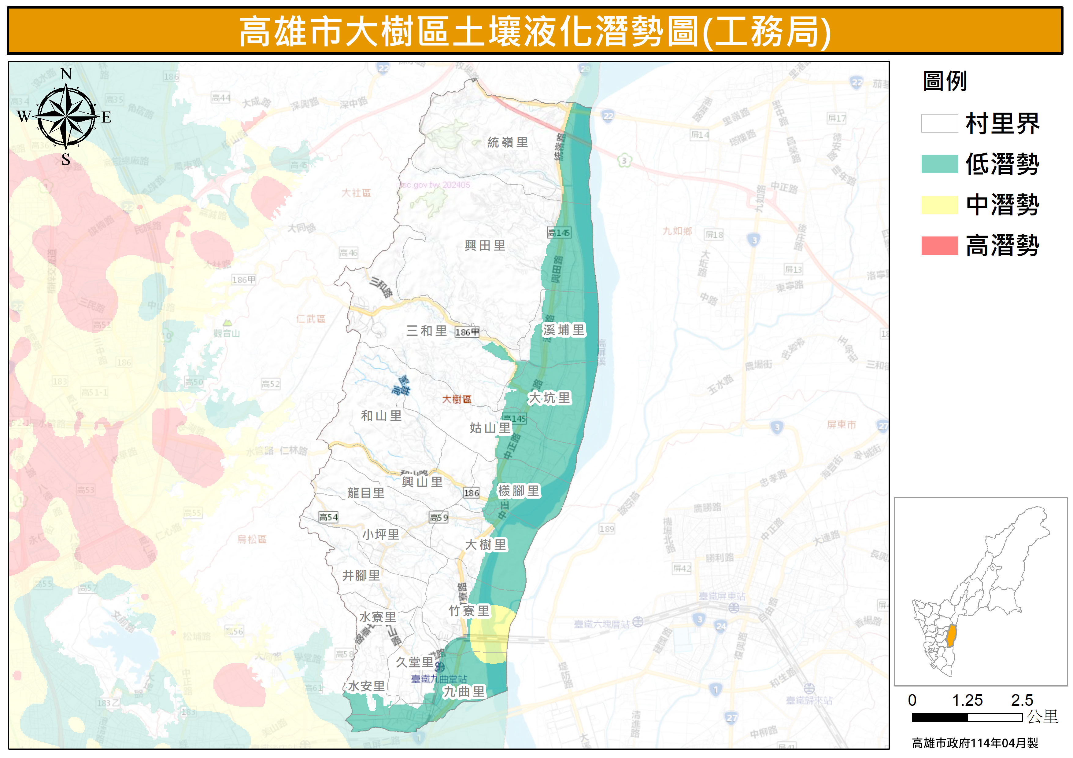 高雄市大樹區土壤液化潛勢圖-工務局