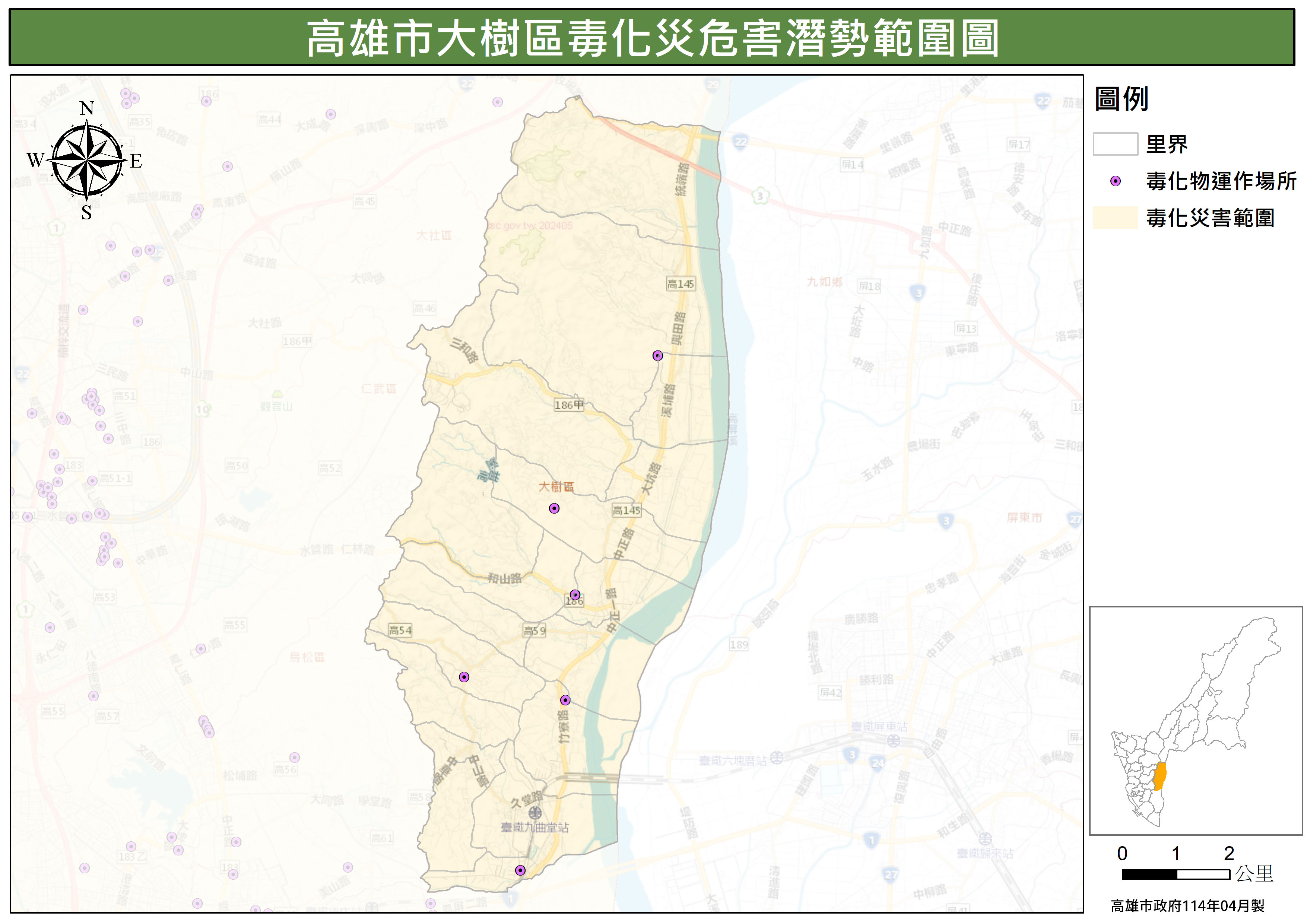 高雄市大樹區毒化潛勢影響範圍圖